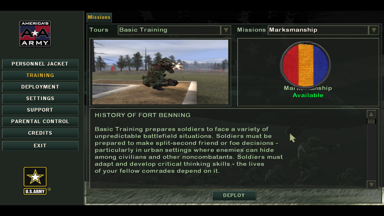 《美國陸軍》(America's Army,2002)並不是一款普通的 FPS 遊戲,它是由美國陸軍(U.S. Army)官方開發的一款募兵遊戲。遊戲以免費的形式供玩家下載,僅需要註冊帳號。然後在完成遊戲中的單人訓練課程後,就能夠加入線上伺服器進行多人遊戲並獲取積分。但可別因為它是由政府開發而低估它的遊戲內涵,相反地,DR 認為這款遊戲曾經在某一段時間裡,算得上是當時最好的擬真類戰術 FPS 遊戲,在遊戲性與真實性之間取得相當不錯的平衡。對戰場景及任務也都是呈現出一種紮實的戰訓氛圍,而沒有商業遊戲容易出現的那種浮誇感。